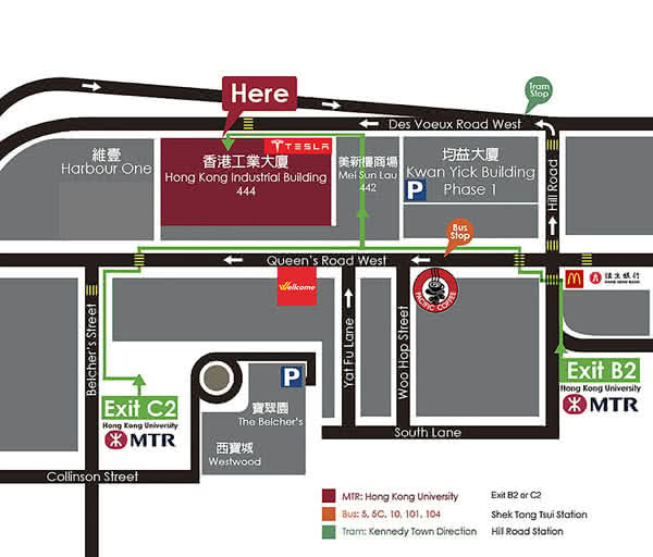 MTR: HKU station (Exit C2)